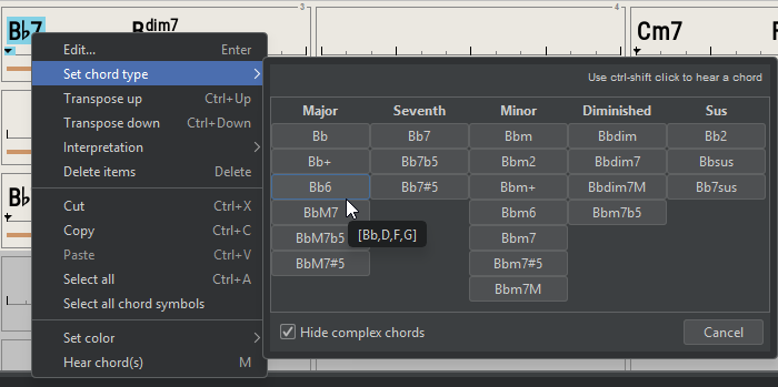 - New popup menu action “Insert section” in the chord leadsheet editor